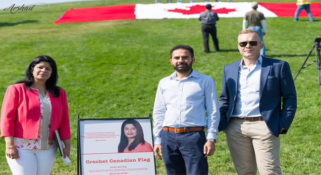 • A Tribute to Canada – By Minu Bhatia. crocheted a 20 x 40 foot Canadian Flag